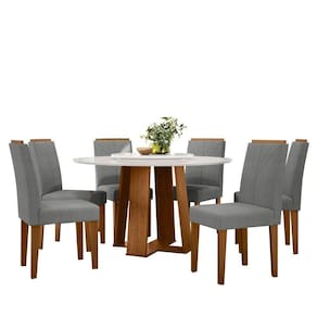 1 Mesa (Tampo + Base/Pés), 6 Cadeiras, kit ferragem e Manual para Montagem.