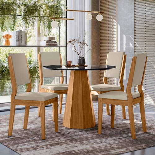 Conjunto Sala de Jantar Mesa Isis 1,00m com 4 Cadeiras Carol Ypê/Preto/Ja01 - New Ceval