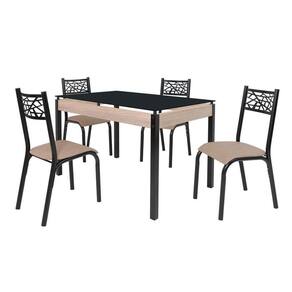 Conjunto Sala de Jantar Mesa Jade 120x75cm Tampo Vidro com 4 Cadeiras Ciplafe Preto/Linho Bege