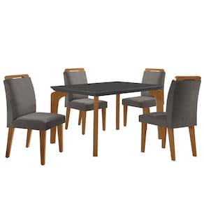 Conjunto Sala de Jantar Mesa Liz 120cm MDF Canto Reto e 4 Cadeiras Athenas Moderna - Cinza