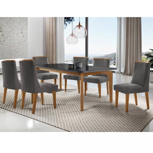 Conjunto Sala de Jantar Mesa Londrina e 6 Cadeiras Montreal Rufato - Cinza
