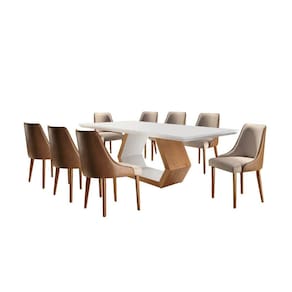 Conjunto Sala de Jantar Mesa Madeira Maciça Sarah e 8 Cadeiras Roma Mobilare Cinamomo Imbuia/Off White/Imbuia Natural/Turim/Car - Marrom