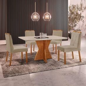 Escala de Brilho: Semi-Brilho Cor Predominante: Mel Encosto e Assento Estofados, Revestidos em Veludo ou Linho Enchimento do Assento: Espuma D-20 Medida da Mesa (A x L x P): 78 X 140 X 80 cm Medida da Base (A x L x P): 75 X 63 X 98 cm Medida do Tampo (L x C x E): 84 X 144 X 2,1 cm Medida da Cadeira/Banco (A x L x P): 94 X 46 X 55 cm Material da Base da Mesa: MDF Peso da Cadeira: 8,5 Kg Cadeira Suporta Até 120 Kg Acabamento da Cadeira: Verniz Natural Material da Estrutura da Cadeira: MDF/Madeira Maciça Cor do Tampo: Off White Cor da Base: Mel Enchimento do Encosto: Espuma D-14 Almofada do Assento: Fixa Estrutura do Assento: MDF 6mm/Espuma 40mm Peso da Mesa: 29,5 Kg Acabamento da Mesa: Verniz Natural Mesa Suporta Até 30 Kg Formato do Tampo: Retângular Material do Tampo: Vidro 3mm/MDF 18mm