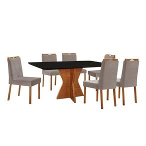 Escala de Brilho: Semi-Brilho Cor Predominante: Mel Encosto e Assento Estofados, Revestidos em Veludo ou Linho Enchimento do Assento: Espuma D-20 Medida da Mesa (A x L x P): 78 X 160 X 90 cm Medida da Base (A x L x P): 75 X 63 X 98 cm Medida do Tampo (L x C x E): 98 X 163 X 2,8 cm Medida da Cadeira/Banco (A x L x P): 94 X 46 X 55 cm Material da Base da Mesa: MDF Peso da Cadeira: 8,5 Kg Cadeira Suporta Até 120 Kg Acabamento da Cadeira: Verniz Natural Material da Estrutura da Cadeira: MDF/Madeira Maciça Cor do Tampo: Preto Cor da Base: Mel Enchimento do Encosto: Espuma D-14 Almofada do Assento: Fixa Estrutura do Assento: MDF 6mm/Espuma 40mm Peso da Mesa: 52 Kg Acabamento da Mesa: Verniz Natural Mesa Suporta Até 30 Kg Formato do Tampo: Retângular Material do Tampo: Vidro 3mm/MDF 25mm