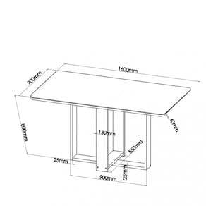Dimensões Mesa: Altura: 80 cm Largura: 160 cm Profundidade: 80 cm