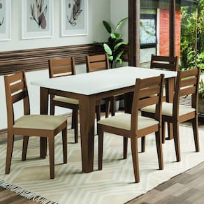 MODELO: Conjunto Sala de Jantar Mesa Miami 1,60m 6 Cadeiras Dakar Dobuê