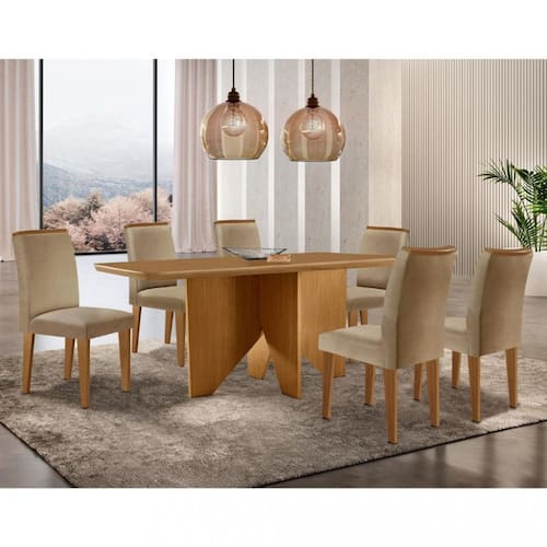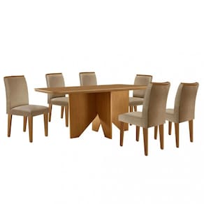 Características: Estrutura em MDF Tampo em MDF Pintura UV 6 Cadeiras Cada cadeira suporta até 120 kg Revestimento com tecido linho