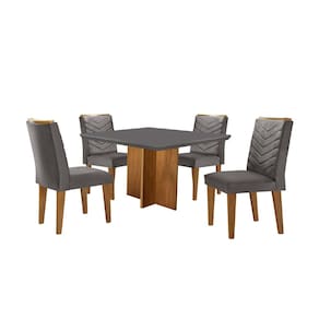 Conjunto Sala de Jantar Mesa Olímpia 90cm MDF Canto Reto e 4 Cadeiras Liz Moderna - Cinza