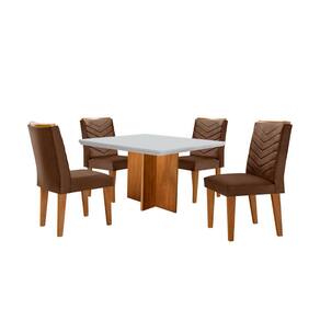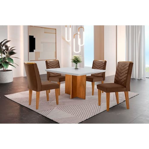 Conjunto Sala de Jantar Mesa Olímpia 90cm Tampo em MDF Canto Copo e 4 Cadeiras Liz Moderna - Marrom
