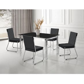 Conjunto Sala de Jantar Mesa ORTENIA COM 4 Cadeiras DINAH Conjunto design Clássico porém moderno. Mesa em aço cromado polido de alto brilho, de pés robustos com encaixe perfeito e preciso das travas nos pés da mesa, a delicadeza fica por conta do TAMPO DE vidro TEMPERADO SERIGRAFADO . Cadeiras resistentes e reforçadas, de aço cromado polido de alto brilho, com pés EM ARMAÇÃO ÚNICA dando um toque de sofisticação a cadeira, ASSENTO E ENCOSTO TAPEÇADOS, DANDO CONFORTE E MODERNIDADE A CADEIRA. Produtos de montagem fácil e funcional. Medida da Mesa (A x L x P): 77cm x 80cm x 120cm Peso da Mesa: 45,25 kg Mesa suporta até: 35.0000 Acabamento da Cadeira/Banco: Cromado Acabamento da Mesa: Cromado Acompanha Manual de Instalação: Sim Almofada do assento: Fixa Almofada do encosto: Fixa Altura do Conjunto: 80 Ambiente Principal: Sala de Jantar Cadeira/Banco estofada: Sim Cadeira/Banco suporta até: 100.0000 codigo_ean: 7909903357422 Complexidade da Montagem: Baixa: pode ser montado por uma pessoa sozinha Cor: Cromado/Preto Cor do Produto: Cromado/Preto Design da Base: 4 Pés Enchimento do Assento: Espuma D-16 Enchimento do Encosto: Espuma D-23 Escala de Brilho: Brilhante Espessura do Tampo: 45 mm Estrutura do Assento: MDF Formato do Tampo: Retangular Itens Inclusos: 1 Mesa, 4 Cadeiras, Kit Ferragens e Manual de Montagem Linha ou Coleção: Ortenia/Dinah Manual de Especificação Técnica: https://product-hub-prd.madeiramadeira.com.br/859690/documents/e9f31976-4501-40bd-b73c-f2b65e56c57dasdeisenewmesaonixortencia.pdf Manual de Montagem e Instalação: https://product-hub-prd.madeiramadeira.com.br/859690/documents/be09b713-222a-4755-bcf9-67dff1c7e290asdeisenewmesaonixortencia.pdf Material da Base da Mesa: Aço Carbono Material da Estrutura da Cadeira: Aço Carbono Material do Tampo: MDF/Vidro Material Principal: Aço Carbono Cromado Material Principal das Cadeiras/Bancos: Aço Carbono Medida da Base (A x L x P): 77cm x 80cm x 120cm Medida da Cadeira/Banco (A x L x P): 92x53x47cm Medida do Tampo (L x C x E): 80x120x6cm Mesa Dobrável: Não Necessita Montagem: Sim Origem do Produto: Nacional Peso da Cadeira/Banco: 5 kg Possui Apoio para Braços: Não Possui Apoio Para os Pés: Não Possui Prateleiras: Não Possui Suporte Giratório: Não Possui Vidro: Sim Quantidade de Cadeiras: 4 Quantidade de Lugares: 04 Recomendações de Uso, Manutenção e Limpeza: Limpeza com pano macio e levemente umedecido. Não ultilizar solventes a base e de inflamáveis. Não utilizar produtos abrasivos. Revestimento da Cadeira/Banco: Suede Sistema de Montagem: Fácil Tipo de Assento: Fixo Tipo de Encosto: Estofado
