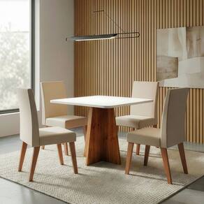 MODELO: Conjunto Sala de Jantar Mesa 0,90m Moove 4 Cadeiras Linho Milano