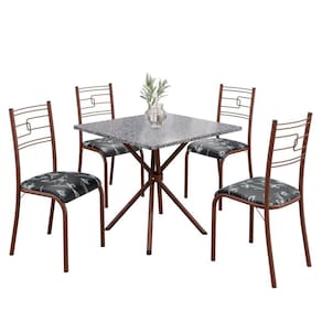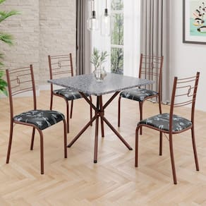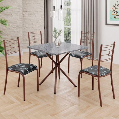 Conjunto Sala de Jantar Mesa Quadrada 70x70cm Tampo Granito Ocre 4 Cadeiras Paraty Preto Floral / Marrom
