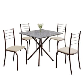 Conjunto Sala de Jantar Mesa Quadrada 70x70cm Tampo Granito Ocre 4 Cadeiras Rio Creme / Marrom