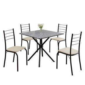 Conjunto Sala de Jantar Mesa Quadrada 70x70cm Tampo Granito Ocre 4 Cadeiras Rio Creme / Preto Fosco