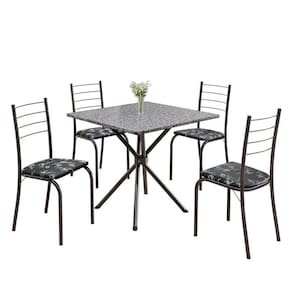 Conjunto Sala de Jantar Mesa Quadrada 70x70cm Tampo Granito Ocre 4 Cadeiras Rio Preto Floral / Mart Prata