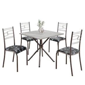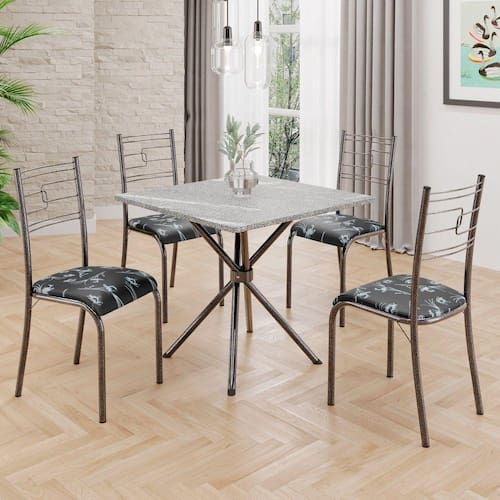 Conjunto Sala de Jantar Mesa Quadrada 70x70cm Tampo Granito Topázio 4 Cadeiras Paraty Preto Floral / Mart Prata