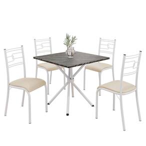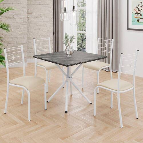 Conjunto Sala de Jantar Mesa Quadrada 70x70cm Tampo Mdp Ardósia Indiana 4 Cadeiras Paraty Creme / Branco