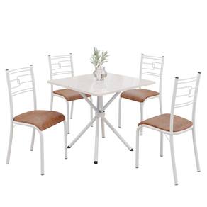 Conjunto Sala de Jantar Mesa Quadrada 70x70cm Tampo Mdp Off White 4 Cadeiras Paraty Courino Marrom / Branco