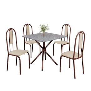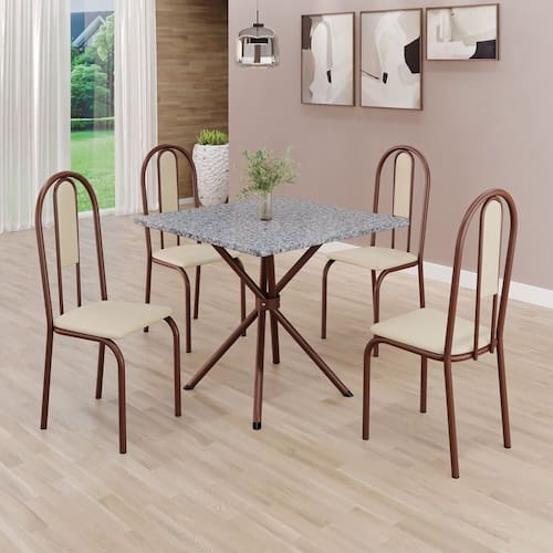 Conjunto Sala de Jantar Mesa Quadrada 75x75cm Tampo Granito Ocre 4 Cadeiras Linda Yescasa Creme/Marrom
