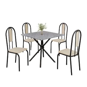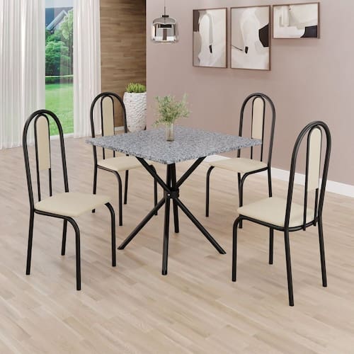 Conjunto Sala de Jantar Mesa Quadrada 75x75cm Tampo Granito Ocre 4 Cadeiras Linda Yescasa Creme/Preto Fosco
