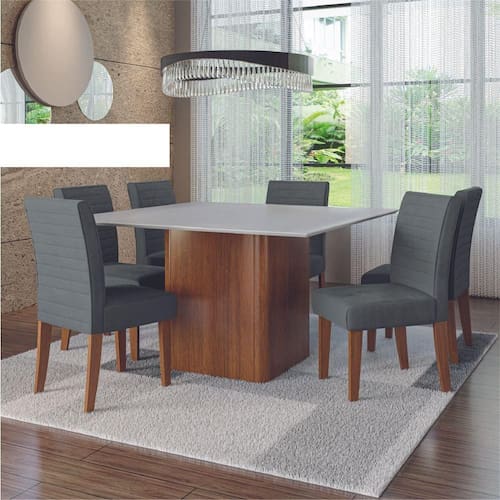 Modelo: Conjunto Sala de Jantar Mesa Quadrada Montevideo 1,36m 6 Cadeiras Creta