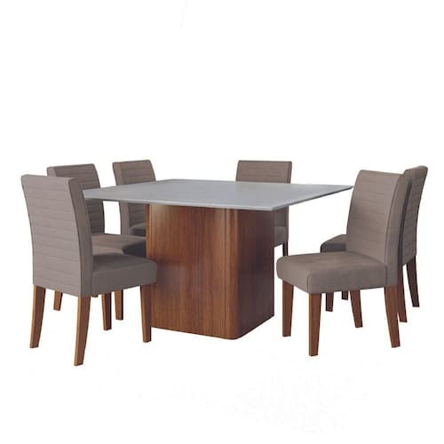 MODELO: Conjunto Sala de Jantar Mesa Quadrada Montevideo 1,36m 6 Cadeiras Creta