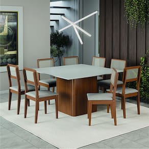 O conjunto de Mesa Montevideo com 8 cadeiras Santiago é a combinação perfeita de charme e beleza para o seu lar. A mesa é não apenas elegante, mas também prática, graças ao material em MDF de alta resistência e qualidade, que é fácil de limpar. Seu design compacto e versátil alia praticidade e elegância no dia a dia. A Cadeira Santiago é uma peça belíssima que traz charme e sofisticação para o seu espaço. Com assento acolchoado para máximo conforto e encosto em tela, ela é projetada para oferecer estilo e funcionalidade. Feita com materiais resistentes e fáceis de limpar, recebe um acabamento com quatro camadas de proteção, garantindo maior durabilidade e resistência.