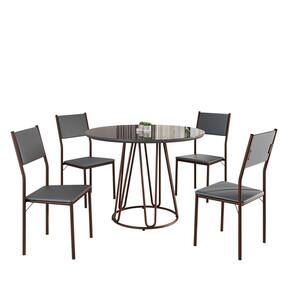 Conjunto Sala de Jantar Mesa Redonda 100cm Base Omega Tampo Mdf Laca com Vidro Florença Grafite / Marrom