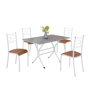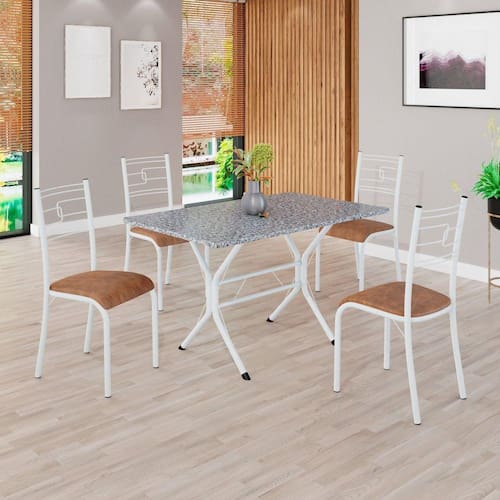 Conjunto Sala de Jantar Mesa Retangular 100x60cm Tampo Granito Ocre 4 Cadeiras Paraty C. Marrom / Branco
