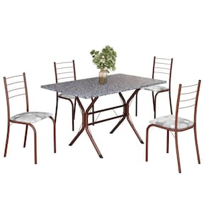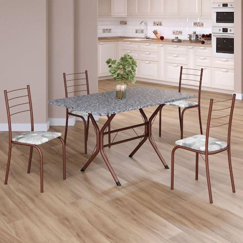 Conjunto Sala de Jantar Mesa Retangular 100x60cm Tampo Granito Ocre 4 Cadeiras Rio Paraopeba / Marrom