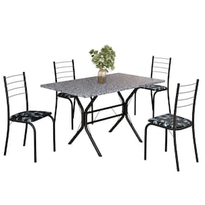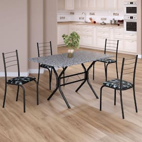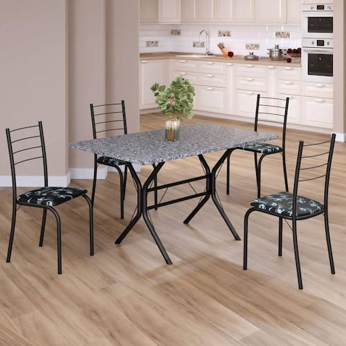 Conjunto Sala de Jantar Mesa Retangular 100x60cm Tampo Granito Ocre 4 Cadeiras Rio Preto Floral / Preto Fosco