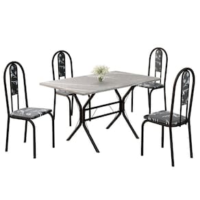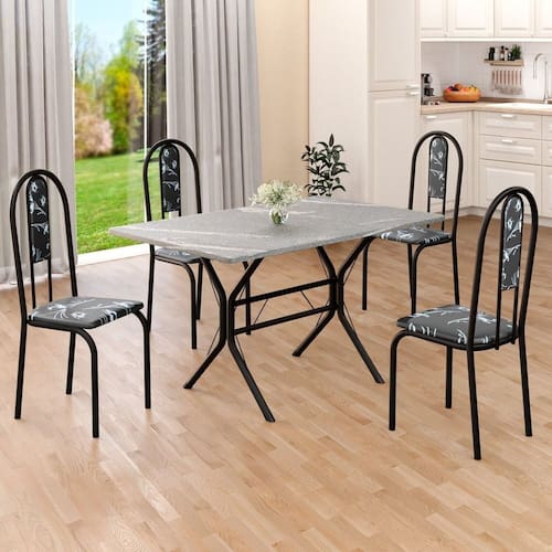 Conjunto Sala de Jantar Mesa Retangular 100x60cm Tampo Granito Topázio 4 Cadeiras Linda Yescasa Preto Floral/Preto Fosco