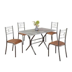 Conjunto Sala de Jantar Mesa Retangular 100x60cm Tampo Granito Topázio 4 Cadeiras Paraty C. Marrom / Mart Prata