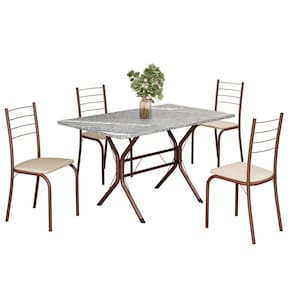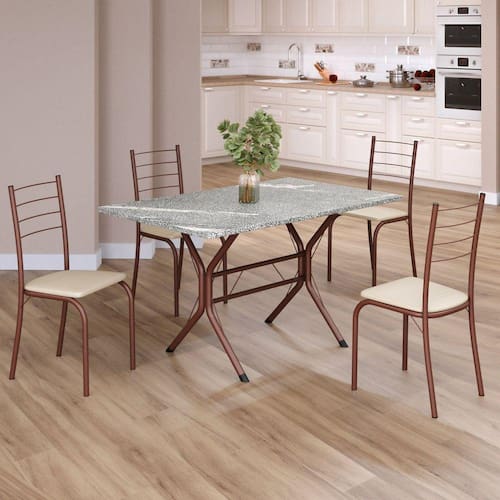 O Conjunto Sala de Jantar Rio é uma ótima escolha para quem busca combinar estilo e praticidade. Este conjunto apresenta uma mesa Retangular com um design elegante e moderno, acompanhada por quatro cadeiras. A mesa tem uma estrutura em aço, que oferece estabilidade ao conjunto. O tampo em pedra granito topázio apresenta uma estética sofisticada e acolhedora. A tonalidade topázio adiciona calor e elegância ao ambiente, enquanto a pedra granito oferece durabilidade e resistência a riscos e manchas. Essa combinação de cores naturais e resistência prática resulta em um visual clássico e funcional, tornando o tampo em pedra granito topázio uma ótima escolha para aprimorar sua sala de jantar. Medida da Mesa (A x L x P): 75,8 cm x 100 cm x 60 cm Peso da Mesa: 34,6 kg Mesa suporta até: 15 kg Acabamento da Cadeira/Banco: Pintura Texturizada Acabamento da Mesa: Pintura Texturizada Ambiente Principal: Sala de Jantar Cadeira/Banco estofada: Somente Assento Estofado Cadeira/Banco suporta até: 120 kg Complexidade da Montagem: Média: pode ser montado por mais de uma pessoa e/ou necessite de maior conhecimento para montagem Cor: Creme / Marrom Cor do Produto: Creme / Marrom Cor Secundária: Bege De Canto (Canto Alemão): Não Escala de Brilho: Semi-Fosco Espessura do Tampo: 18 mm Estrutura do Assento: MDP de 15mm, espuma 1,2mm, courino. Formato do Tampo: Retangular Itens Inclusos: 1 Mesa, 4 Cadeiras, Manual de Montagem e Ferragens Manual de Montagem e Instalação: https://product-hub-prd.madeiramadeira.com.br/897701/documents/6e1eabe9-78fc-4248-9136-209a292380e51837585cjriocabofrio.pdf Material da Base da Mesa: Aço Material da Estrutura da Cadeira: Aço Material do Tampo: Granito Medida da Base (A x L x P): 74 cm x 58,9 cm x 70 cm Medida da Cadeira/Banco (A x L x P): 84,5 cm x 37,5 cm x 41,5 cm Medida do Tampo (L x C x E): 60 cm x 100 cm x 1,8 cm Mesa Extensível: Não Necessita Montagem: Sim Origem do Produto: Nacional Peso da Cadeira/Banco: 2,48 kg Possui Apoio Para os Pés: Não Quantidade de Lugares: 04 Recomendações de Uso, Manutenção e Limpeza: Limpe a superfície usando um pano úmido com a solução(75%água + 15%detergente neutro), torça para retirar o excesso e, em seguida, finalize com um pano limpo e seco. Sistema de Montagem: Parafusos