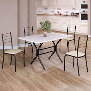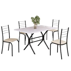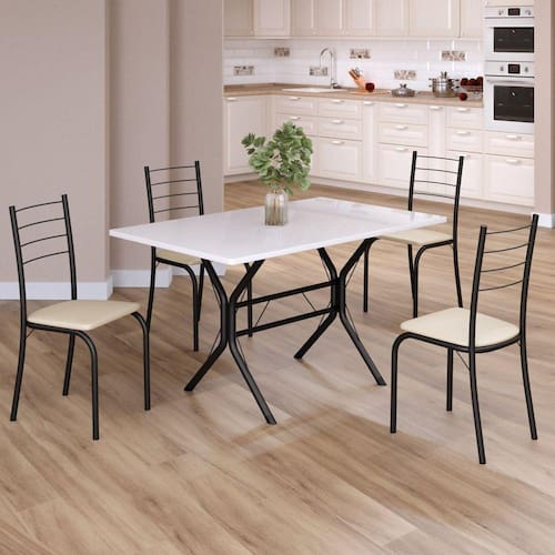 Conjunto Sala de Jantar Mesa Retangular 100x60cm Tampo Madeira Mdp 4 Cadeiras Rio Creme / Preto Fosco