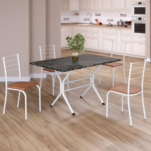 O Conjunto Sala de Jantar Rio é uma ótima escolha para quem busca combinar estilo e praticidade. Este conjunto apresenta uma mesa Retangular com um design elegante e moderno, acompanhada por quatro cadeiras. A mesa tem uma estrutura em aço, que oferece estabilidade ao conjunto. O tampo em Madeira MDP ardósia indiana apresenta uma estética sofisticada e acolhedora. A tonalidade ardósia indiana adiciona calor e elegância ao ambiente, enquanto a Madeira MDP oferece durabilidade e resistência a riscos e manchas. Essa combinação de cores naturais e resistência prática resulta em um visual clássico e funcional, tornando o tampo em madeira MDP ardósia indiana uma ótima escolha para aprimorar sua sala de jantar. Medida da Mesa (A x L x P): 75,8 cm x 100 cm x 60 cm Peso da Mesa: 8,54 kg Mesa suporta até: 15 kg Acabamento da Cadeira/Banco: Pintura Texturizada Acabamento da Mesa: Pintura Texturizada Ambiente Principal: Sala de Jantar Cadeira/Banco estofada: Somente Assento Estofado Cadeira/Banco suporta até: 120 kg Complexidade da Montagem: Média: pode ser montado por mais de uma pessoa e/ou necessite de maior conhecimento para montagem Cor: C. Marrom / Branco Cor do Produto: C. Marrom / Branco Cor Secundária: Marrom De Canto (Canto Alemão): Não Escala de Brilho: Semi-Fosco Espessura do Tampo: 15 mm Estrutura do Assento: MDP de 15mm, espuma 1,2mm, courino. Formato do Tampo: Retangular Itens Inclusos: 1 Mesa, 4 Cadeiras, Manual de Montagem e Ferragens Manual de Montagem e Instalação: https://product-hub-prd.madeiramadeira.com.br/897794/documents/b58b1ecb-168c-4731-8d9e-4ea71e7f842f1837585cjriocabofrio.pdf Material da Base da Mesa: Aço Material da Estrutura da Cadeira: Aço Material do Tampo: MDP Medida da Base (A x L x P): 74 cm x 58,9 cm x 70 cm Medida da Cadeira/Banco (A x L x P): 84,5 cm x 37,5 cm x 41,5 cm Medida do Tampo (L x C x E): 60 cm x 100 cm x 1,5 cm Mesa Extensível: Não Necessita Montagem: Sim Origem do Produto: Nacional Peso da Cadeira/Banco: 2,48 kg Possui Apoio Para os Pés: Não Quantidade de Lugares: 04 Recomendações de Uso, Manutenção e Limpeza: Limpe a superfície usando um pano úmido com a solução(75%água + 15%detergente neutro), torça para retirar o excesso e, em seguida, finalize com um pano limpo e seco. Sistema de Montagem: Parafusos