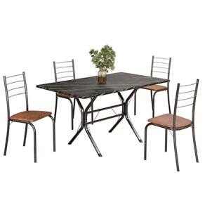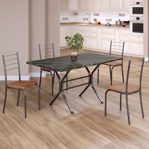 Conjunto Sala de Jantar Mesa Retangular 120x75cm Tampo Ardósia Indiana 4 Cadeiras Rio C. Marrom / Mart Prata