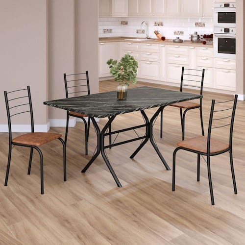 Conjunto Sala de Jantar Mesa Retangular 120x75cm Tampo Ardósia Indiana 4 Cadeiras Rio C. Marrom / Preto Fosco