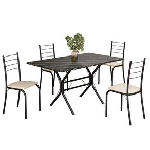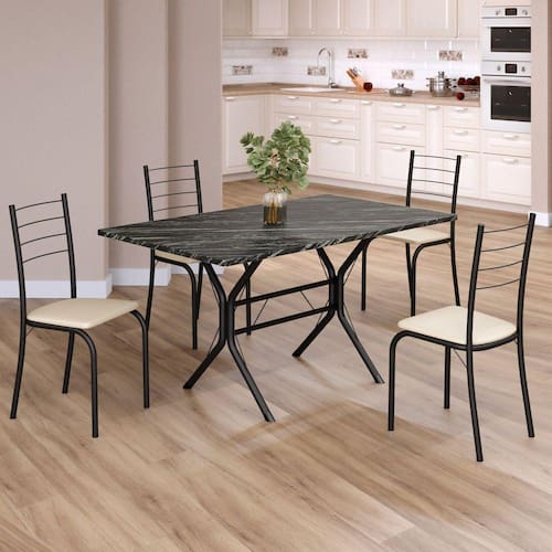 Conjunto Sala de Jantar Mesa Retangular 120x75cm Tampo Ardósia Indiana 4 Cadeiras Rio Creme / Preto Fosco