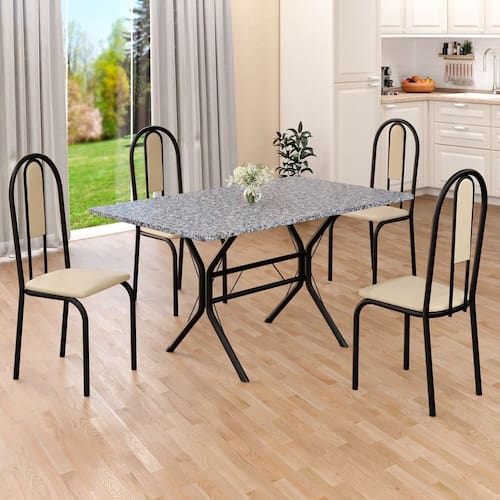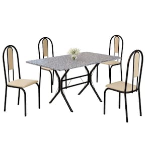 Conjunto Sala de Jantar Mesa Retangular 120x75cm Tampo Granito Ocre 4 Cadeiras Linda Yescasa Creme/Preto Fosco