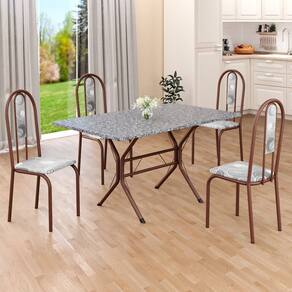 Conjunto Sala de Jantar Mesa Retangular 120x75cm Tampo Granito Ocre 4 Cadeiras Linda Yescasa Paraopeba/Marrom