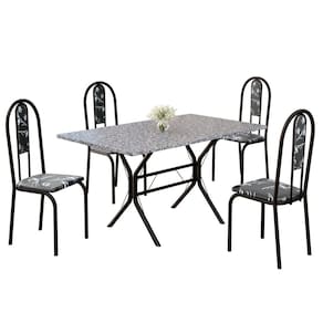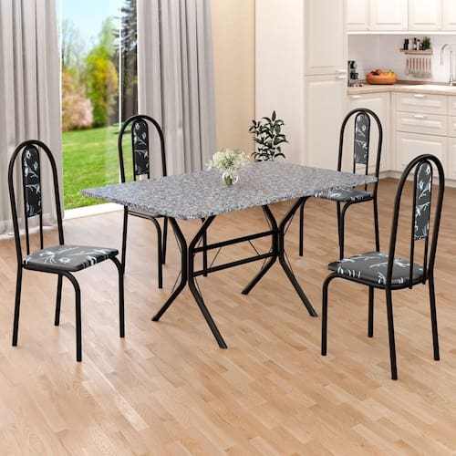 Este conjunto de mesa retangular e 4 cadeiras oferece estilo e praticidade. Com estrutura tubular em aço para estabilidade, o tampo em pedra granito adiciona sofisticação e resistência a riscos e manchas. As cadeiras combinam harmoniosamente com a mesa, garantindo conforto com estofamento. Ideal para diversos espaços, é perfeito para receber convidados ou desfrutar de refeições em família, criando um ambiente acolhedor e elegante. Medida da Mesa (A x L x P): 75,8 cm x 120 cm x 75 cm Peso da Mesa: 52.7 Mesa suporta até: 15 Acabamento da Cadeira/Banco: Pintura Texturizada Acabamento da Mesa: Polido Ambiente Principal: Sala de Jantar Cadeira/Banco estofada: Encosto e Assento Estofados Cadeira/Banco suporta até: 120 kg Complexidade da Montagem: Média: pode ser montado por mais de uma pessoa e/ou necessite de maior conhecimento para montagem Cor: Preto Floral/Preto Fosco Cor do Produto: Preto Floral/Preto Fosco Cor Secundária: Preto De Canto (Canto Alemão): Não Enchimento do Assento: Espuma D-12 Escala de Brilho: Semi-Fosco Espessura do Tampo: 18 Estrutura do Assento: MDP de 15mm, espuma 1,2mm, courino. Formato do Tampo: Retangular Itens Inclusos: 1 Mesa, 4 Cadeiras, Manual de Montagem e Ferragens. Manual de Montagem e Instalação: https://product-hub-prd.madeiramadeira.com.br/905740/documents/f511d25c-d65b-43b5-848e-ca9130bdccfc1941861524617153437289396.pdf Material da Base da Mesa: Aço Material da Estrutura da Cadeira: Aço Material do Tampo: Granito Medida da Cadeira/Banco (A x L x P): 92X cm x 37,5X cm x 45,5X cm Medida do Tampo (L x C x E): 75 cm x 120 cm x 1,8 cm Mesa Extensível: Não Necessita Montagem: Sim Origem do Produto: Nacional Peso da Cadeira/Banco: 3,36 kg Possui Apoio Para os Pés: Não Quantidade de Lugares: 04 Recomendações de Uso, Manutenção e Limpeza: Usar um pano de tecido macio e seco, evitar detergentes, alvejantes e produtos químicos de limpeza; no tampo usar tecido macio levemente umedecido. Revestimento da Cadeira/Banco: Courino Sistema de Montagem: PARAFUSOS