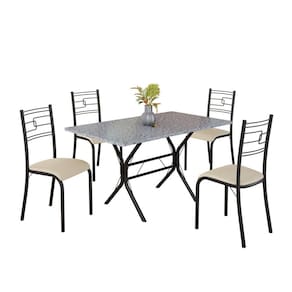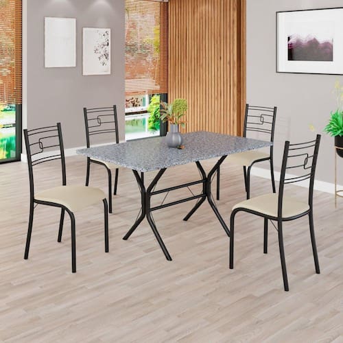 Conjunto Sala de Jantar Mesa Retangular 120x75cm Tampo Granito Ocre 4 Cadeiras Paraty Creme / Preto Fosco
