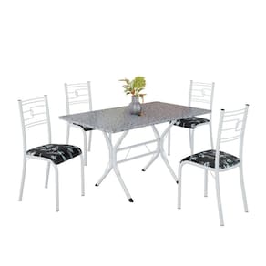 Conjunto Sala de Jantar Mesa Retangular 120x75cm Tampo Granito Ocre 4 Cadeiras Paraty Preto Floral / Branco