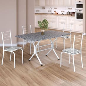 Conjunto Sala de Jantar Mesa Retangular 120x75cm Tampo Granito Ocre 4 Cadeiras Rio Paraopeba / Branco