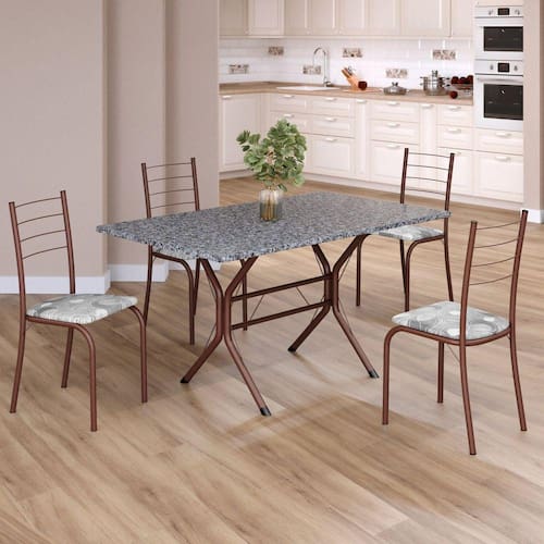 Conjunto Sala de Jantar Mesa Retangular 120x75cm Tampo Granito Ocre 4 Cadeiras Rio Paraopeba / Marrom