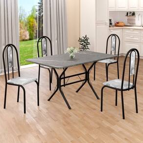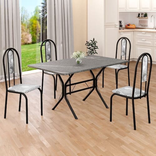 Conjunto Sala de Jantar Mesa Retangular 120x75cm Tampo Granito Topázio 4 Cadeiras Linda Yescasa Paraopeba/ Preto Fosco
