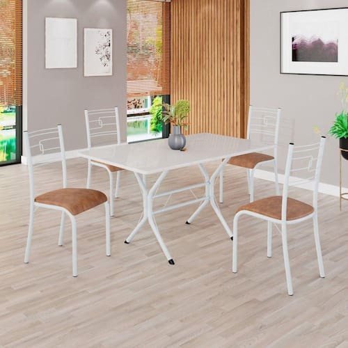 Conjunto Sala de Jantar Mesa Retangular 120x75cm Tampo Madeira Mdp Off White 4 Cadeiras Paraty C. Marrom / Branco
