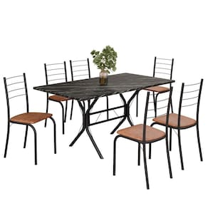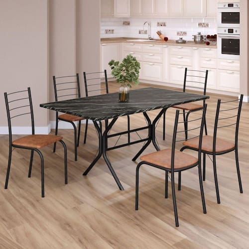 Conjunto Sala de Jantar Mesa Retangular 140x75cm Tampo Ardósia Indiana 6 Cadeiras Rio C. Marrom / Preto Fosco