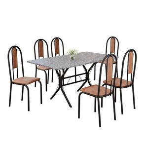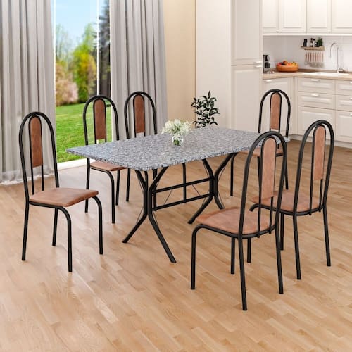 Conjunto Sala de Jantar Mesa Retangular 140x75cm Tampo Granito Ocre 6 Cadeiras Linda Yescasa Marrom/Preto Fosco